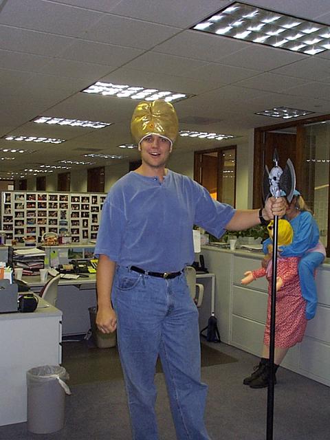 I guess Bill just wore a funny hat? (The axe is Mike's.)