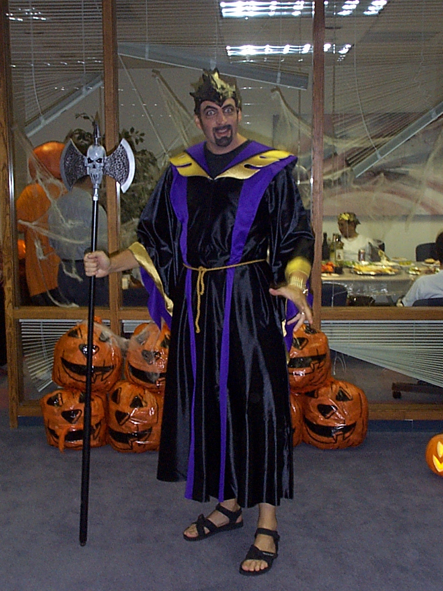 I guess Mike was an evil sorcerer, but he reminded me a lot of Ming The Merciless from the old Flash Gordon serials. Nice makeup job -- it really transformed his features. Can't remember whether his wife Lisa did it, as I'd have expected, or if he did it himself. By the way, a funny moment occurred when I was explaning that I was not Medusa but a male Gorgon and Mike thought I said I was "a male organ".