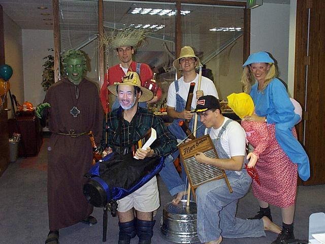 The winners of the costume contest. The first few years I participated in it, the prizes were for First, Second, and Third place, so there must have been a tie for Second or Third, in addition to Jeff, Chris, and John sharing their prize. I remember them being annoyed with me for spoiling their plans for sharing the larger First Place prize.