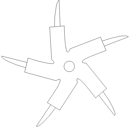 For the background on my IntelliDraw drawings, see Evil Logos. This, my second drawing with IntelliDraw, was sparked when the lower-right object in my Shurikens drawing reminded me of The Glaive with its blades retracted. What is The Glaive, you ask? A magical weapon from the film Krull -- kind of a Nerf Boomerang From Hell. Anyhow, this was my most complex IntelliDraw drawing -- it's not just a bare Symmetrigon shape.