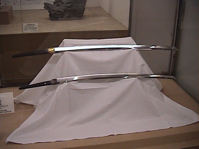 Zoom Out Real samurai sword blades in a case inside Okazaki Castle (which serves as a museum).