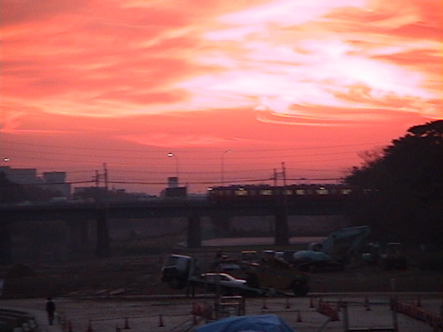 I kept trying to catch a shot of the train going by along with the sunset, but the train kept coming just after I'd give up and start walking again. Didn't quite get back "en pointe" on time for this one.