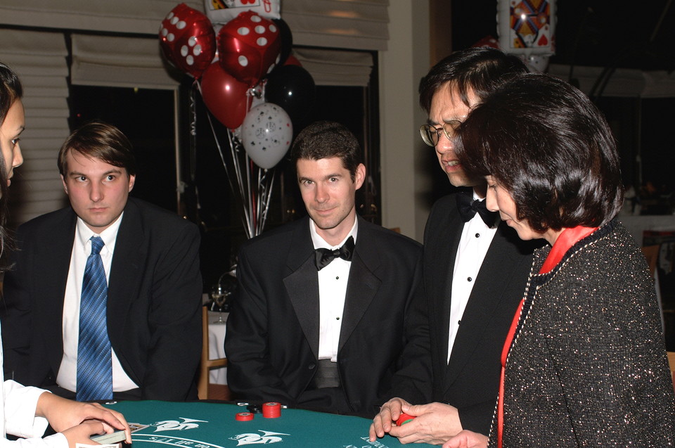 Zoom Out Kelson Vibber observes some suspects, Louis Gaghan grins mischievously, and Richard Peng and his wife... act like Richard Peng and his wife. Zoom In