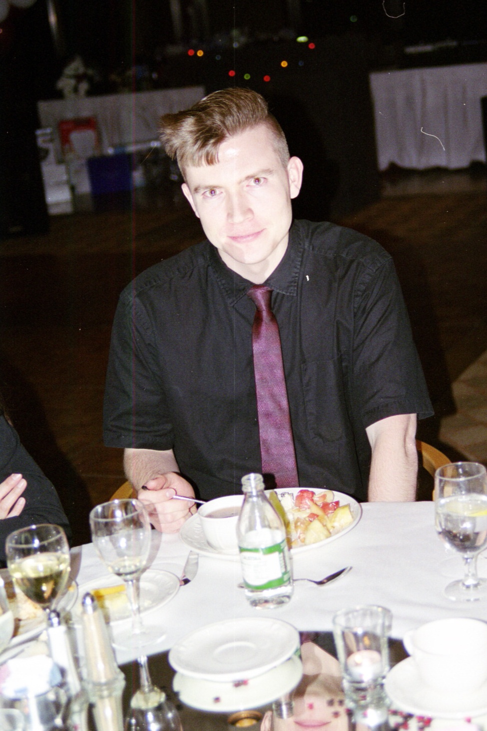 Zoom Out Me again. A note to party planners everywhere: mirrored centerpieces do not make for good photo ops, as the flash casts mottled shadows on the faces of those around the tables.