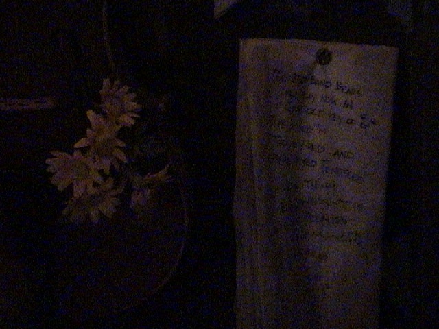 | Either a note to the bears or some lyrics, scrawled on a napkin. This photo has been enhanced in Paint Shop Pro, but there was only so much that could be done. | ||||