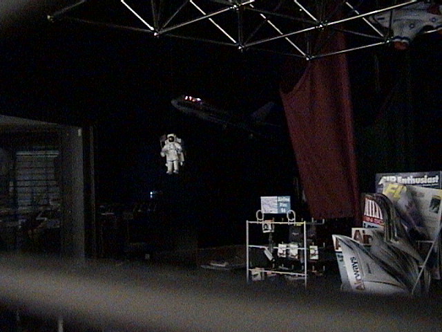 | Again, a bit hard to see due to the low lighting in the closed museum, but there was a pretty neat model Pan Am airliner hanging from the ceiling, along with an astronaut (perhaps a tie-in with the Pan Am spaceliner in 2001: A Space Odyssey?). | ||||