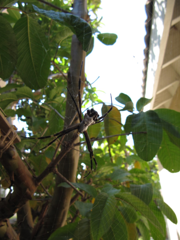 Zoom Out Same spider, same web, same Canon, the next day. The web showed up nicely against the leaves in this shot. Zoom In