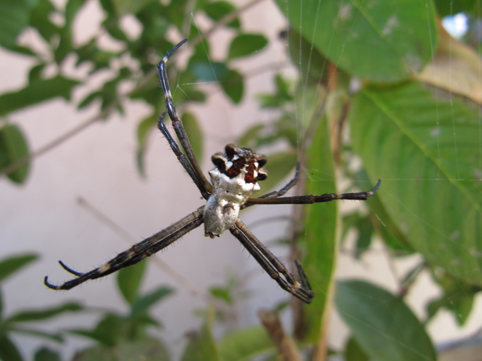 | I finally discovered that my Mom's camera has a setting to adjust the flash intensity, and in this shot and some of the following ones, I took advantage of that to get the benefits of a flash without washing anything out. I felt this shot gave a good impression of the spider's silveriness (which is referred to in both the genus name Argiope and the species name argentata), so I decided to contribute it to Wikimedia Commons and add it to the Argiope (spider) Wikipedia page. | ||||
